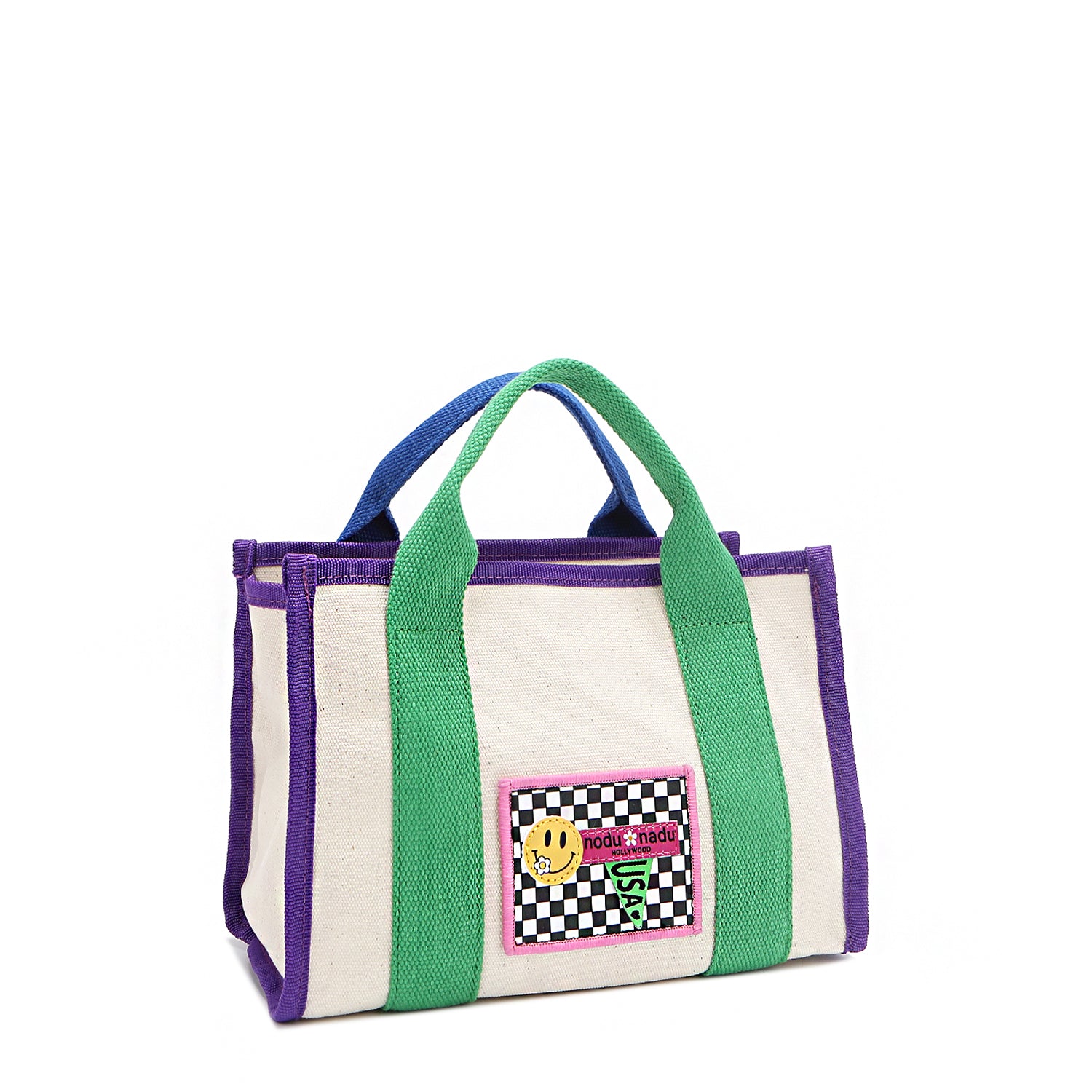 Why settle for one color when you can have them all? This small canvas bag brings the fun with bold color-block trim and mix-and-match straps—because your style deserves options!